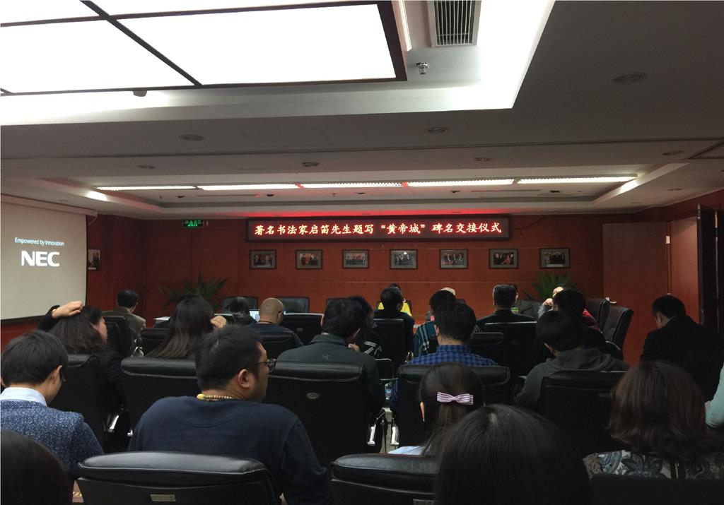 2016年12月5日,達(dá)華集團(tuán)總部舉辦了“著名書法家啟笛先生題寫‘黃帝城’碑名交接儀式”。達(dá)華集團(tuán)董事長杜永林,中國書法家協(xié)會(huì)理事、著名書法家啟笛,涿鹿縣委常委、涿鹿縣副縣長賈斌等領(lǐng)導(dǎo)和嘉賓,以及達(dá)華集團(tuán)相關(guān)工作人員參加了儀式。 活動(dòng)伊始,公司董事長致辭。杜總對(duì)啟笛先生的題字表示衷心的感謝,堅(jiān)定了達(dá)華集團(tuán)對(duì)涿鹿縣、黃帝城開發(fā)的決心。涿鹿縣賈縣長對(duì)達(dá)華為涿鹿縣作出的貢獻(xiàn)表示充分肯定,對(duì)啟笛先生、對(duì)集團(tuán)的工作表達(dá)了謝意。 啟笛先生談了自己對(duì)黃帝城的理解,充分展現(xiàn)了藝術(shù)大家的情懷。 “黃帝城”碑名交接儀式在大家的掌聲中圓滿結(jié)束。